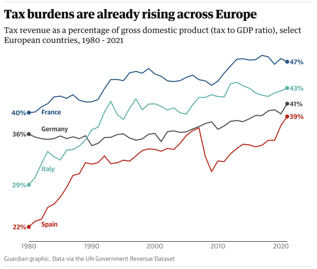 - Tax rates and national debt will continue to rise leading to economic collapse, and further out-migration from Europe.